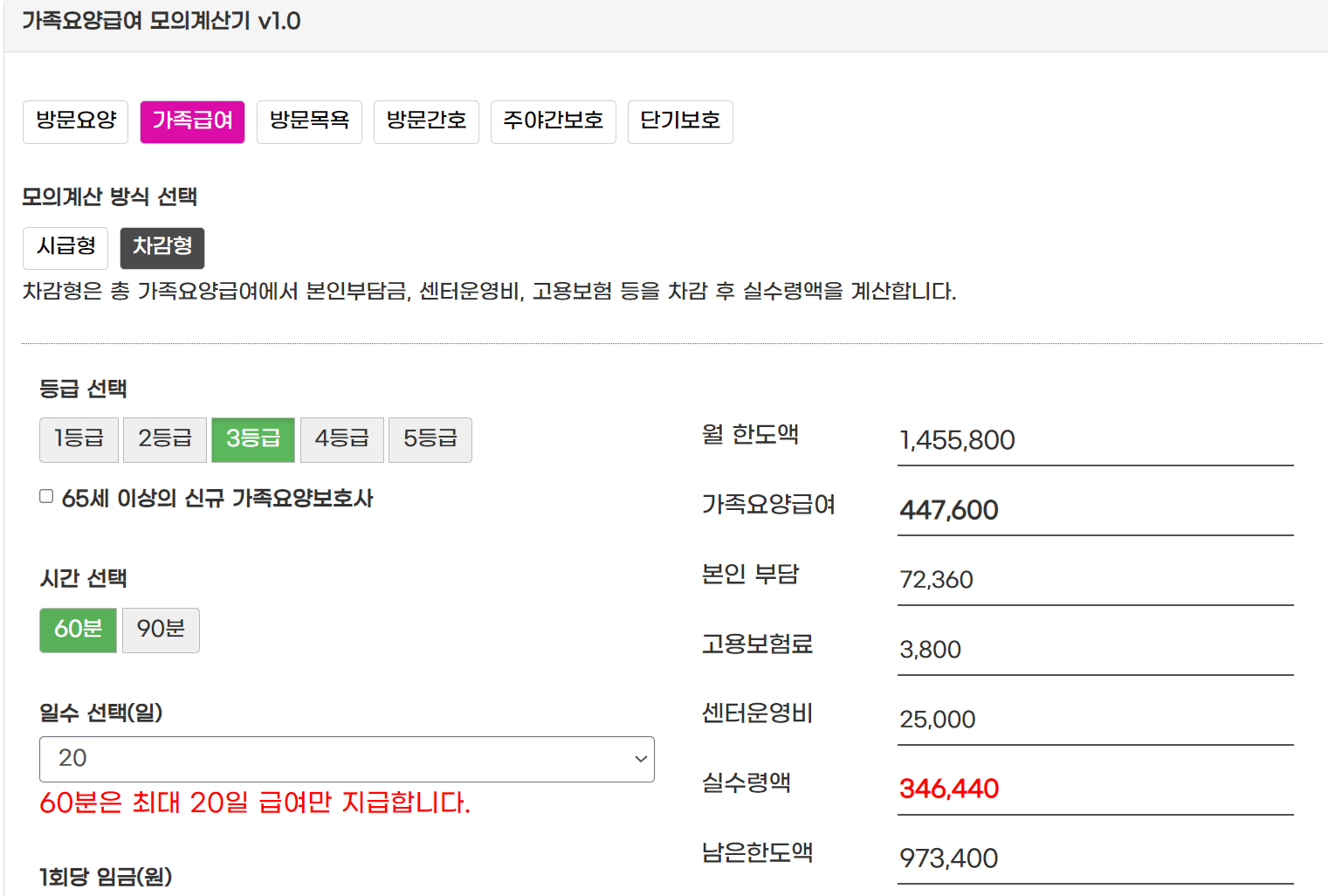 또한 돌보는 가족의 건강 상태가 급여에 영향을 미칩니다. 중증 환자나 특별한 케어가 필요한 경우에는 더 많은 급여가 제공될 수 있습니다.