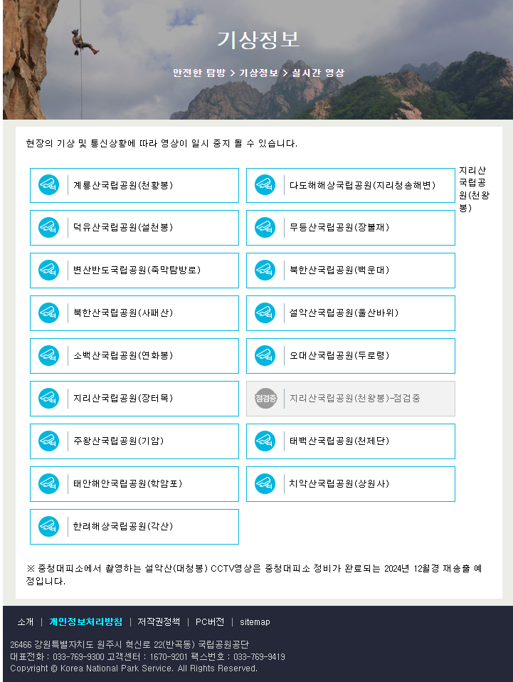 아래 버튼을 클릭하면 국립공원 실시간 cctv 모바일 버전으로 바로 이동됩니다.