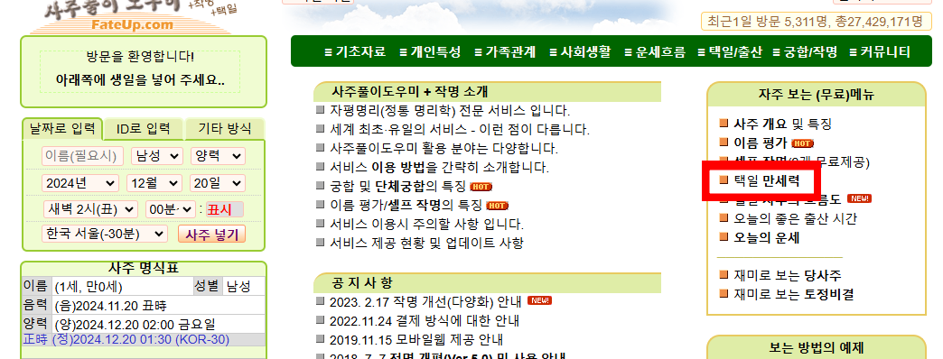 만세력 사주보는방법 (인터넷 무료 만세력)