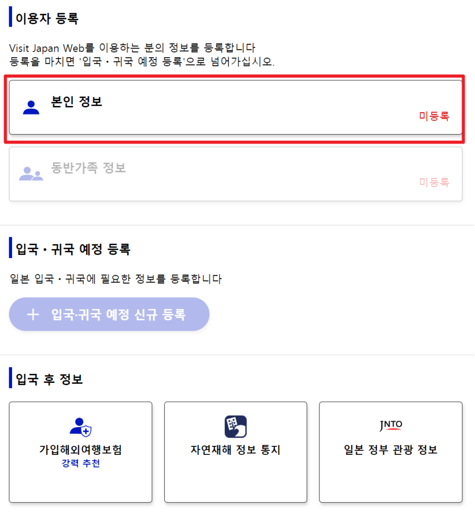 비지트 재팬 웹사이트는 일본 여행을 계획하는 데 매우 유용한 플랫폼입니다. 이 웹사이트에서는 여행자의 개인정보와 여행정보를 미리 등록할 수 있는 시스템을 제공합니다.누구보다 빠르게