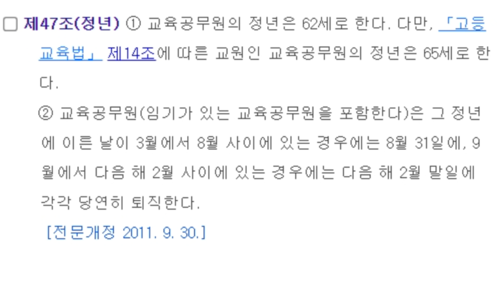 교사의 정년퇴직 나이는 62세 입니다. 보통 교사나 교육공무원이 만 62세가 되는 해의 2월 말일에 정년퇴직을 하게 될 경우 8월 31일이지 실제 정년퇴직 날이 되는 것 입니다.