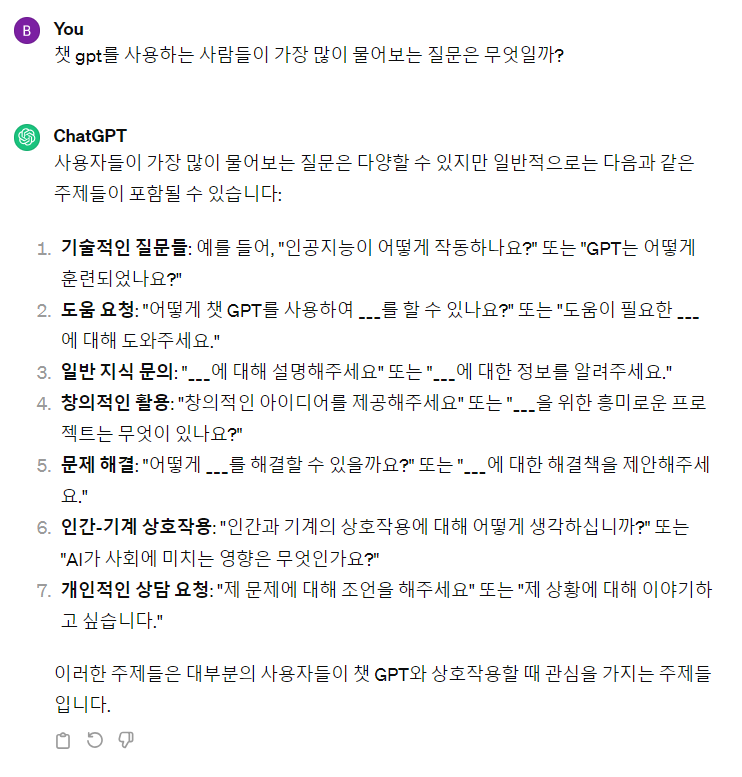 챗GPT는 여러분의 피드백을 통해 발전할 수 있습니다. 답변이 마음에 들지 않거나 수정이 필요할 경우, 이를 알려주면 더 나은 답변을 얻을 수 있습니다.