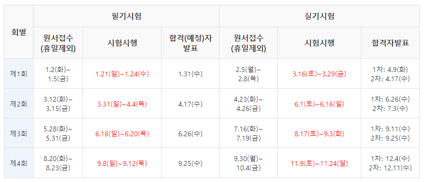 원서 접수 기간, 필기시험 날짜, 실기시험 일정 등을 놓치지 않도록 주의해야 합니다.