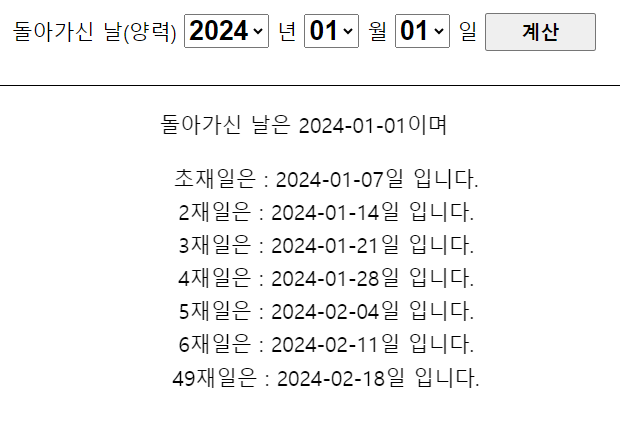 7일째, 14일째, 21일째, 28일째, 35일째, 42일째, 그리고 49일째에 기도를 올리는 것이 전통적인 방식입니다.